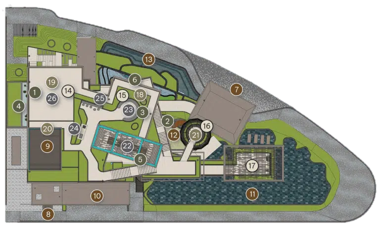 Nhà câu lạc bộ The Canopy tỏa sáng như một biểu tượng cho sự sung túc – đặc quyền dành riêng cho cư dân của phân khu The Orchard. Lấy ý tưởng thiết kế từ ngôi nhà trên cây ẩn mình trong thiên nhiên hùng vĩ, The Canopy tái lập trải nghiệm khám phá các tầng khác nhau của khu rừng xanh cùng cảm giác sống hòa hợp với tự nhiên, dù tìm lại sự tĩnh lặng để tái tạo tinh thần, hay sum vầy cùng người thân để thổi bừng năng lượng