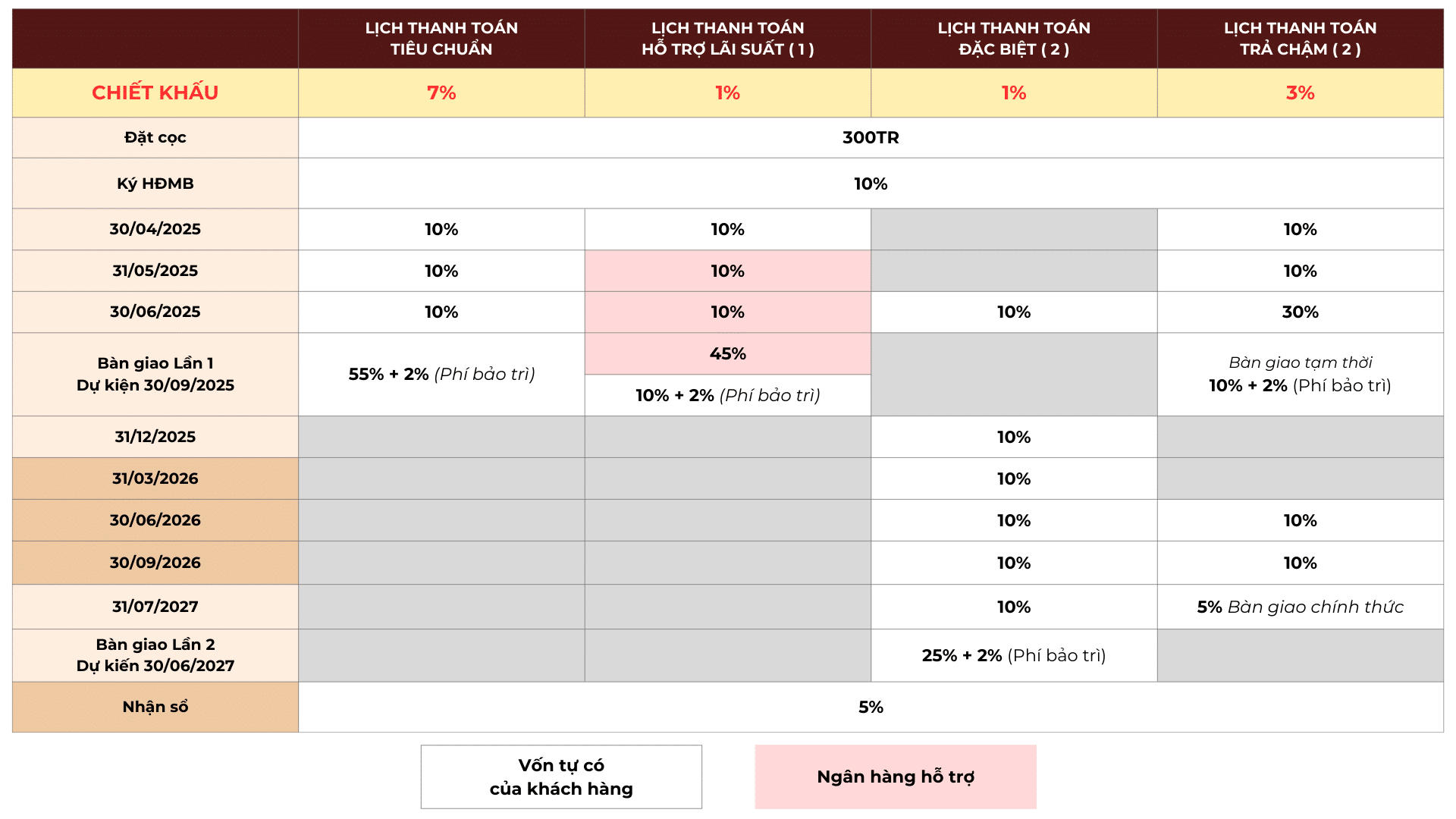 (2) Lịch thanh toán trả chậm và thanh toán đặc biệt: Chỉ áp dụng cho 5 căn đầu tiên được xét duyệt.
