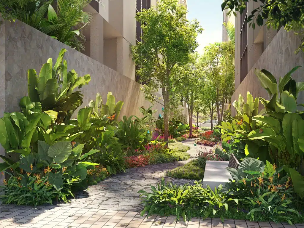Vườn cảm quan Sensory Gardens mang đến hệ thực vật đa dạng đan xen giữa các dãy nhà tại phân khu The Orchard, đưa ta say đắm vào những trải nghiệm đa giác quan và đến gần hơn với thiên nhiên.